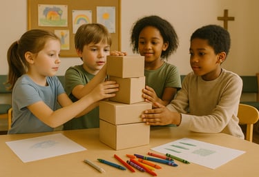 L'apprentissage par le jeu est au cœur de notre approche pédagogique à l'église. Les enfants explorent la foi à travers des activités ludiques, des chants et des jeux interactifs, qui favorisent leur compréhension des valeurs chrétiennes tout en développant leur esprit de collaboration.
